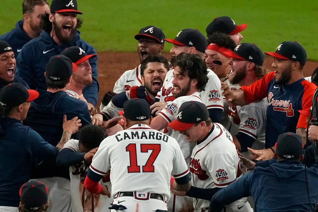 The series with the LA Dodgers was phenomenal. Hard-fought series by both teams. Atlanta Braves are World Series bound winning the series 4-2. With a final score of 4-2 in Game 6, they became the NLCS Champions. Eddie Rosario’s at bat in the bottom of the fourth inning with two on base, two outs, and a 1-2 count, he crushed a three-run homerun off of Walker Buelher to put the Braves up for good. Ian Anderson started the game, pitching four innings. He only allowed one hit. The pitching staff combined to seal the victory. Top of the 9th with two outs, Will Smith pitched to AJ Pollock, who hit the ball to shortstop Dansby Swanson, who then threw it to first baseman Freddie Freeman for the final out of the game.