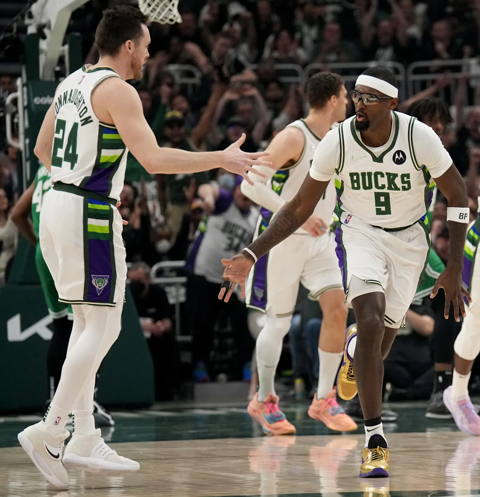 Between Him and Holiday, and without Khris Middleton (missed 6th straight game, sprained MCL) they combined to have 60 field goal attempts. Holiday had a solid 25 points and seven rebounds. Brook Lopez had a double-double himself with 13 points and 10 rebounds. Pat Connaughton and Bobby Portis who came off the bench after starting games 1 & 2 combined for all 20 of the team’s bench points.