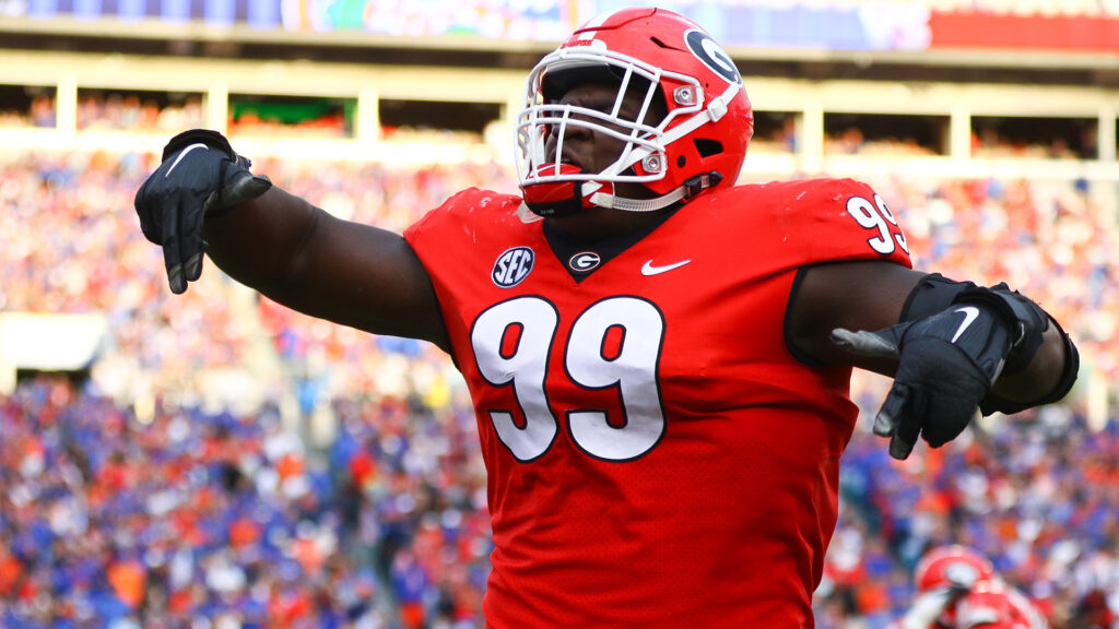 Jordan Davis has had all the eyes on him since the sugar bowl in 2021. In that game, he chased down Desmond Ridder for a sack and everyone watching was stunned (4:10). It’s normally not surprising to see a player from Georgia be able to sack a non power five quarterback. However, it will always be mesmerizing to watch a 6’6” 340 pound man chase down one of the more athletic QBs in college football; a potential NFL quarterback as well. Davis is a giant. Despite being so big, he was able to run a 4.78 40 yard dash at the NFL Combine!