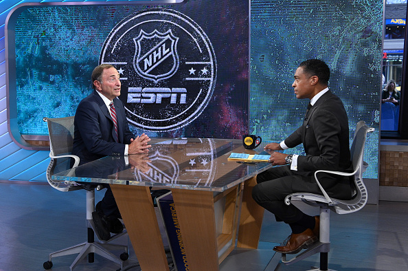 GOOD MORNING AMERICA – 10/11/21 – NHL Comissioner Gary Bettman is a guest on Good Morning America, on Monday, October 11, 2021 on ABC. (Photo by Paula Lobo/ABC via Getty Images) GARY BETTMAN, TJ HOLMES