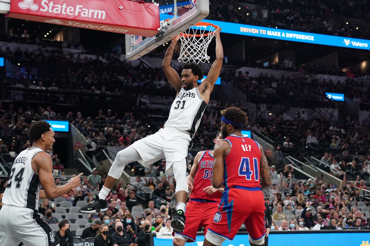San Antonio Spurs get season-high 144 points in win without Dejounte Murray against the Pistons, 144-109. Keldon Johnson led the Spurs with 27 points shooting 83%. While the Pistons played without rookie Cade Cunningham, Hamidou Diallo led the Pistons with 28 points.