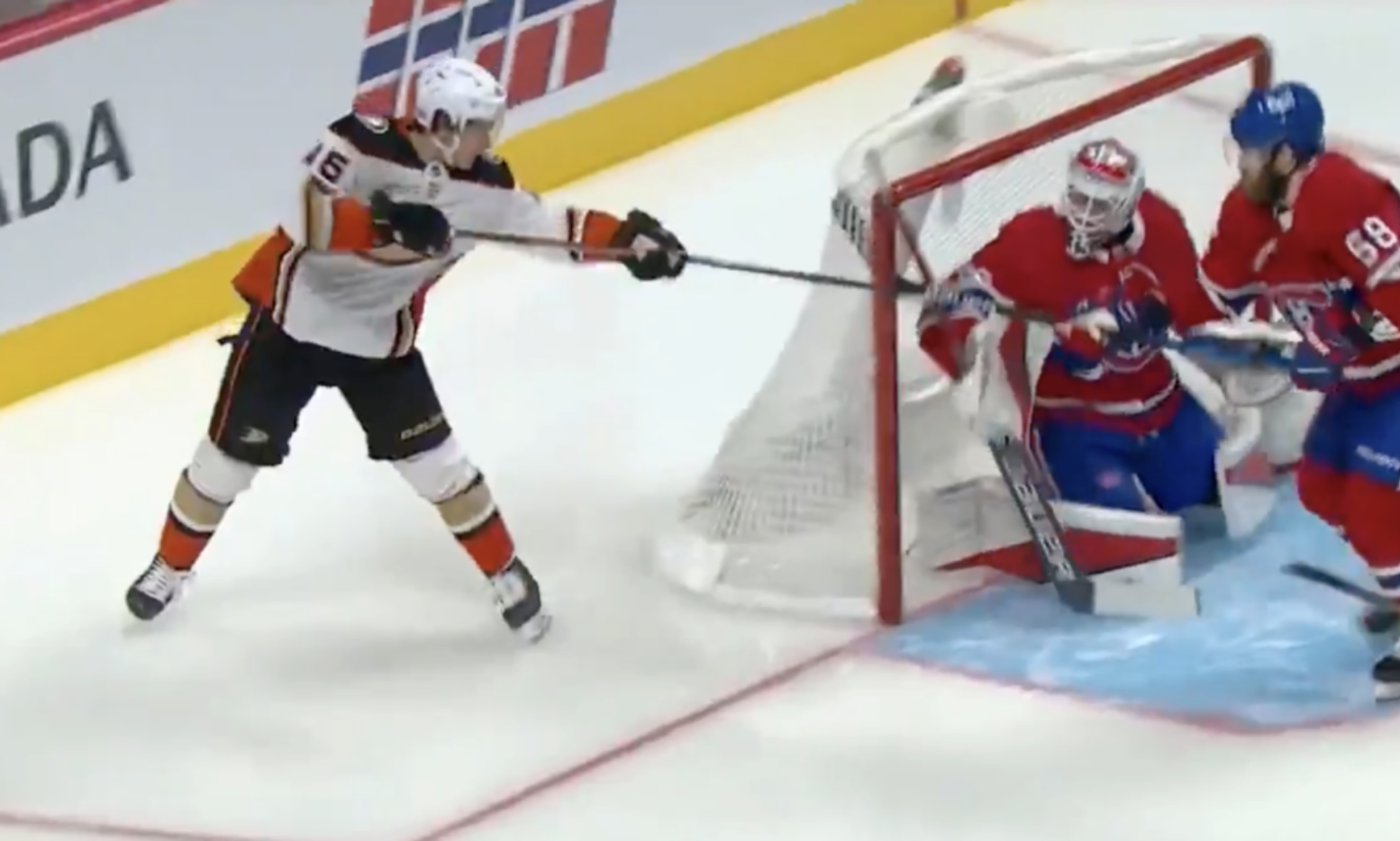 Zegras seized the opportunity, skating down the right side of the rink, picking up the loose puck from a scrum of three players like it was nothing, and casually dumping it over the shoulder of Canadiens goalkeeper Sam Montembeault.